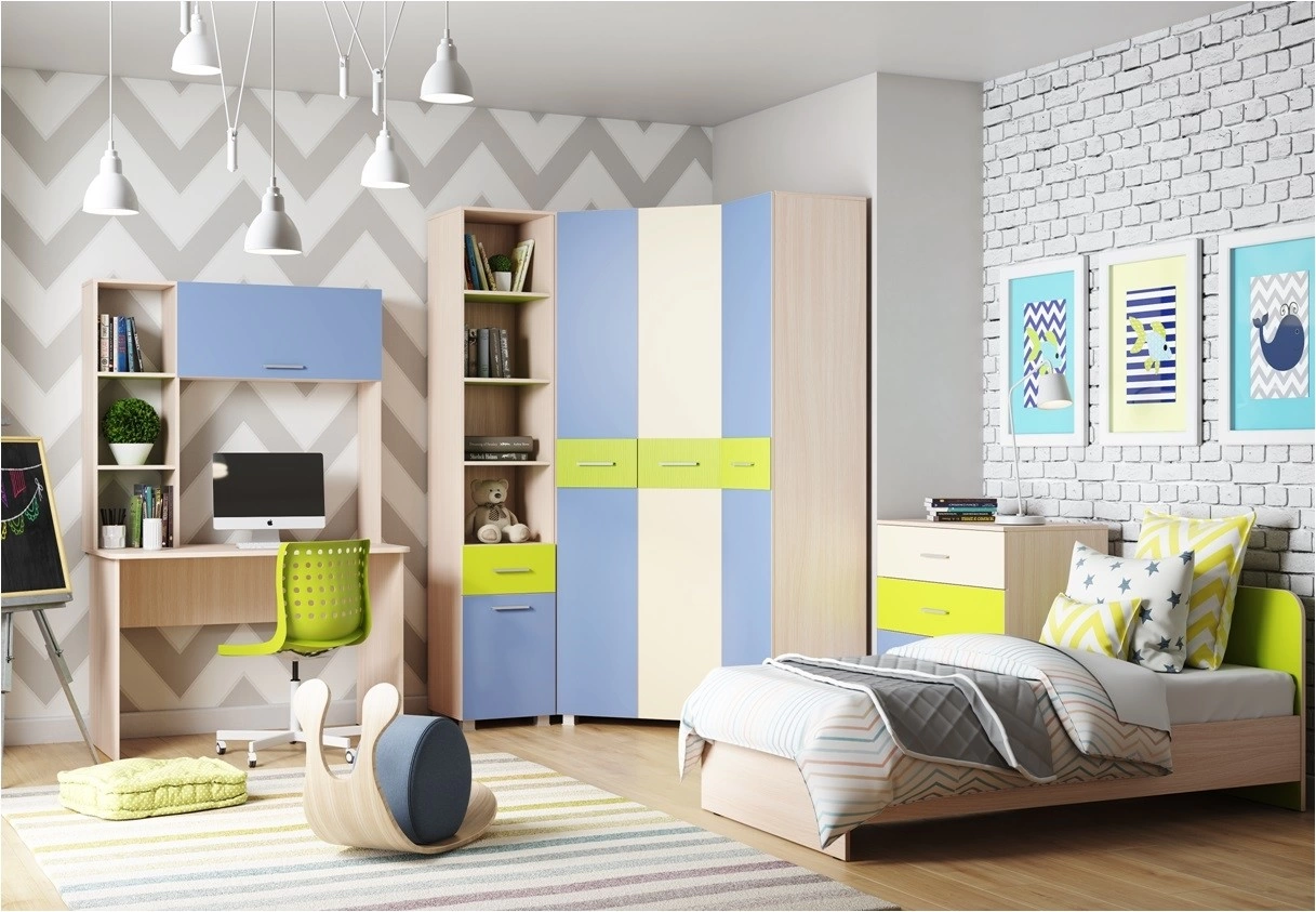 - Материал: ЛДСП 16мм/МДФ 10мм/Накладки на фасадах выполненные из ХДФ толщиной 3мм облицованного пленкой ПВХ Матовая Риф Лайм.