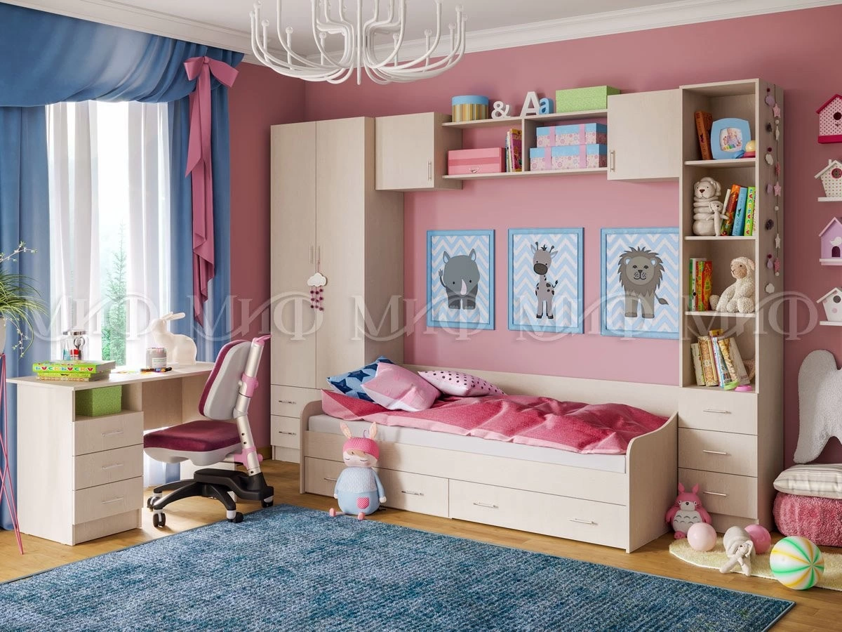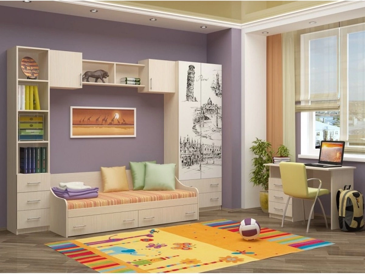 - Общие Габариты Детской: Ширина 3135 мм х Глубина 380 мм x Высота 2200 мм