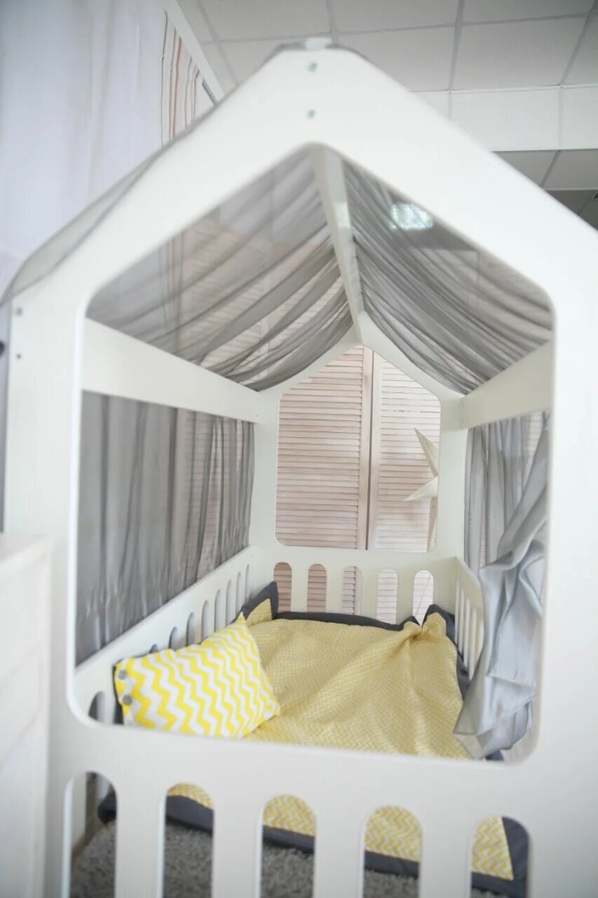 Эта удивительно красивая детская кроватка идеально подойдёт под интерьер любой детской комнаты! Очень компактная и эргономичная: спальное место ночью, игровая зона днем!