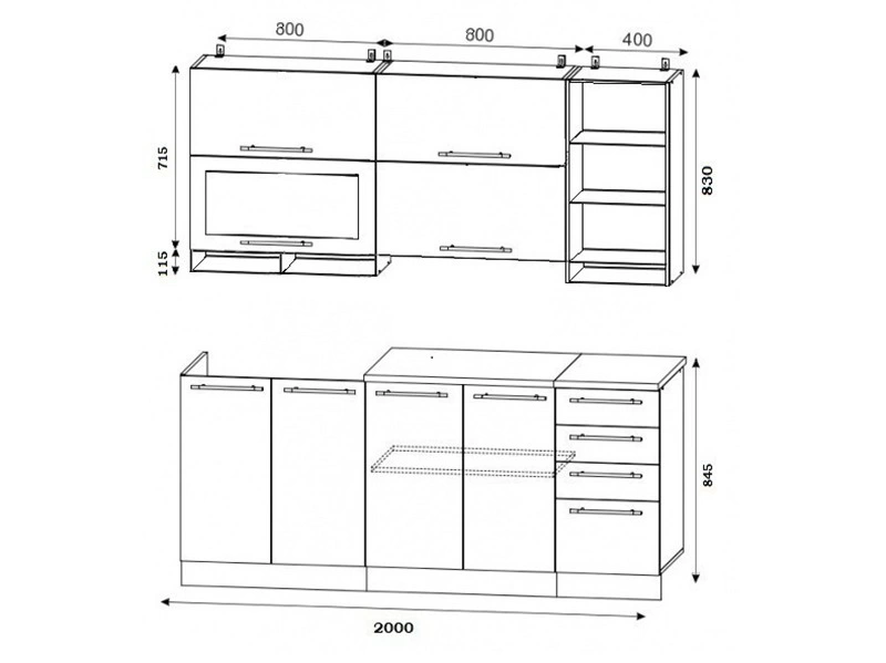 - Высота шкафов: Верхние 700 мм/Нижние 850 мм