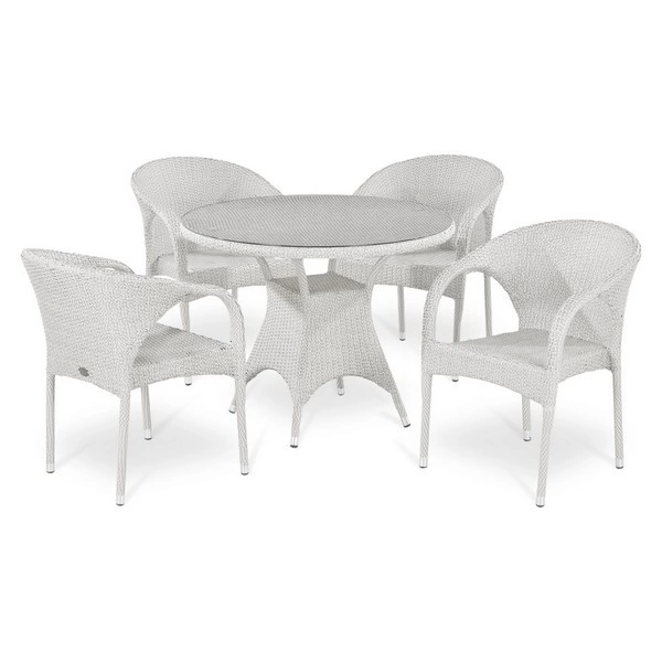Стол: D96xH74 см, Стекло: закаленное - 5 мм, Кресло: W59xD63xH81 см, Каркас: сталь, Материал: искусственный ротанг. Цвет: White, Объем и вес комплекта:, 0,94м3,46,1кг
