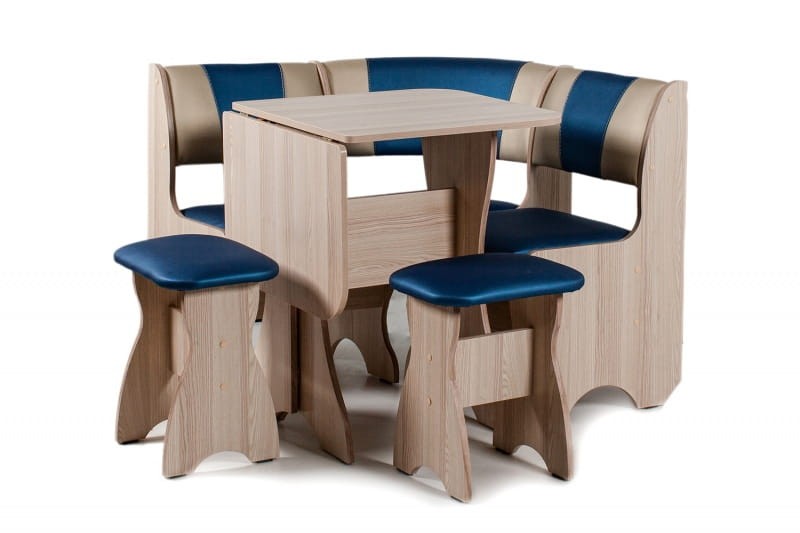Особенности уголка: С этим набором Вы легко организуете обеденную зону даже в самом небольшом пространстве. Диван имеет два вместительных ящика для хранения различных вещей. Столешница покрыта термостойким пластиком. Влагостойкие ножки. Размеры: Размер угловой скамьи: ш(1000х1000)хг500хв850 мм. Размер стола: ш625(1000)хг580хв750 мм. Размер табурета: ш380хг290хв460 мм. Уголок универсален - собирается как в левом, так и в правом исполнении.