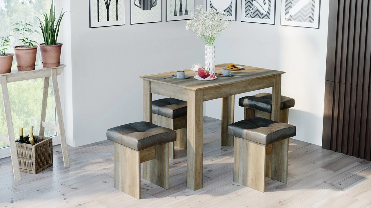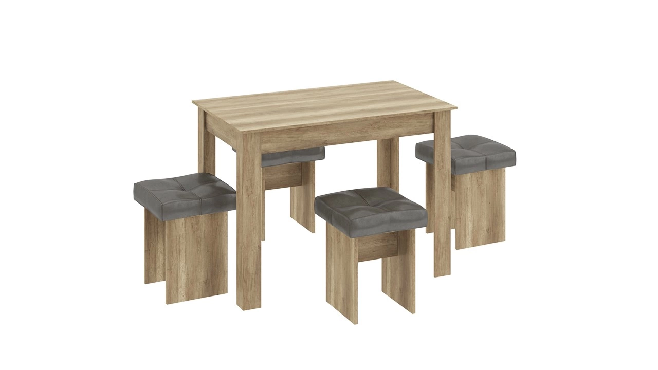 - Обеденная зона "Мадрид №2" состоит из практичного стола и компактных табуретов.