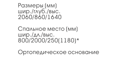 - Спальное место (ШхГхВ), мм: 800х2000х250/1180(+ высота матраца)