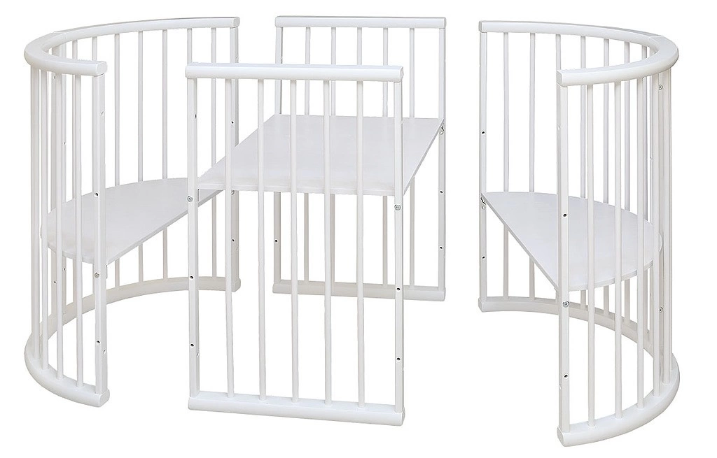 Кровать состоит из 3-х частей, которые могут использоваться как по отдельности, так и вместе. Боковые части могут использоваться в качестве спального места для ребенка (1 боковая часть - приставка к кровати родителей, 2 боковые части, соединенные вместе - кроватка-люлька), а также в качестве диванчика/столика для игр. Центральная часть может использоваться в качестве столика. Все части, соединенные вместе, могут использоваться в качестве кроватки для ребенка до 3-х лет, а также в качестве манежа (нижнее положение основания под матрац).