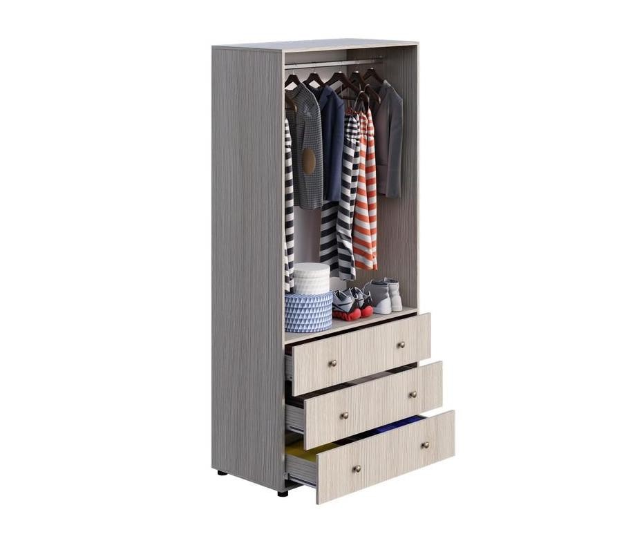- Шкаф оснащен секцией с металлической штангой и выдвижными ящиками на шариковых направляющих глубиной 450 мм.